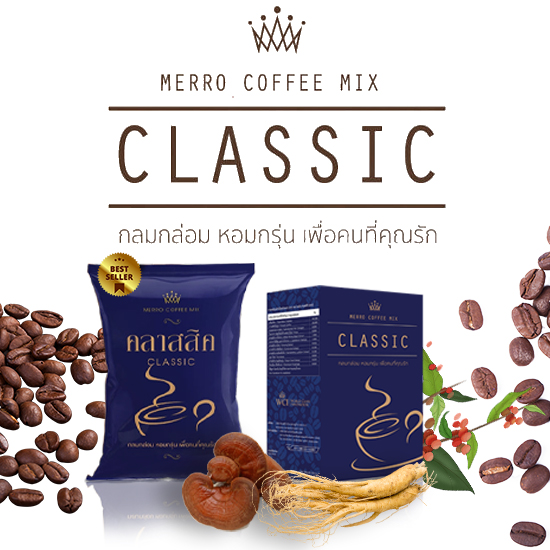 กาแฟ คลาสสิค (Classic Coffee Mix) กาแฟอาราบิก้า ผสม คอลลาเจน ตังถั่งเช่า และเห็ดหลินจือ 1 กล่อง 10 ซอง